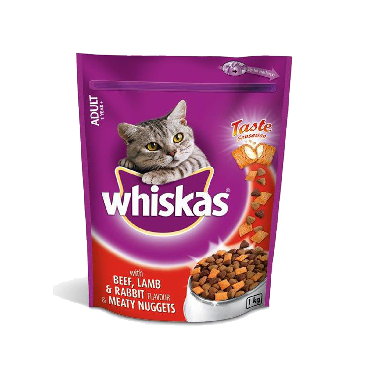 Whiskas Beef Lamb & Rabbit with Meaty Nuggets Adult Dry Cat Food has the perfect mix of Beef, lamb and rabbit flavors that your cat won’t be able to resist. Plus, our recipe is protein-rich for lean muscles, contains antioxidants for a healthy immune system, and helps support healthy joints.
