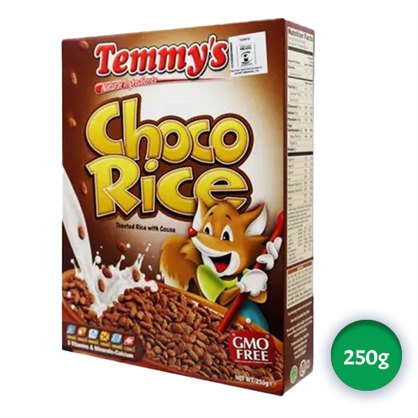 Temmy’s Choco Rice – Cereal. Serving Size : 30 g. 150Cal. 85%25gCarbs. 8%1gFat. 7%2gProtein